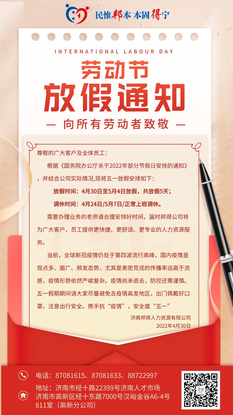 • 2024年5月濟南邦得人力資源有限公司總公司關(guān)于濟南市高...